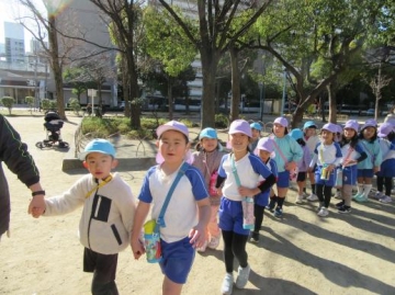 新町保育園の5歳児(ぱんだぐみ)さんと一緒に手をつないで公園へ行って遊んで来ました。