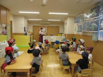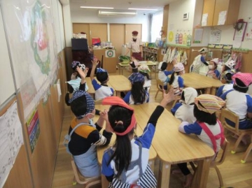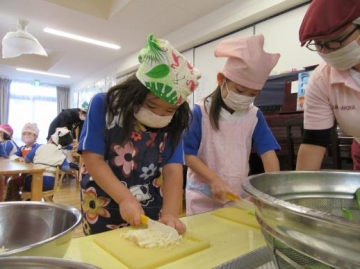 給食時には、自分たちがちぎったキャベツがサラダとして調理したものを美味しく頂きました。