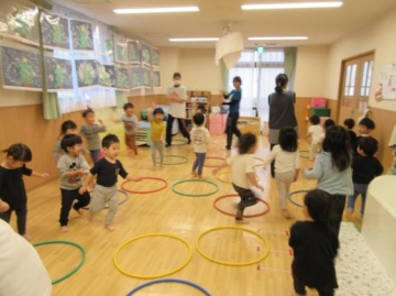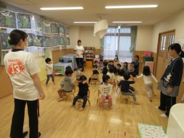 この他、フープで遊んだり、いすとりゲームをしたりと2歳児交流を楽しんでいました。