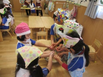 説明を真剣に聞き、「これでいい?」と確認しながらみんな指先を使いながら上手にちぎっていました。