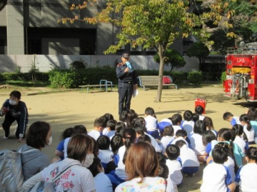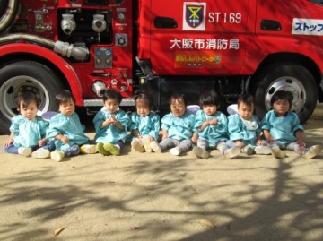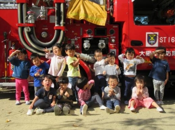 子ども達は、消防自動車を興味深く見て楽しんでいました。