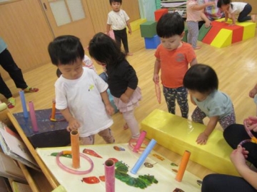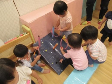 わなげや積み木で遊んだり・・・ひよこぐみへいってふうせんで遊んだり・・・