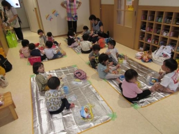 あいにくの天候で残念ながら保育園で遊ぶことに・・・