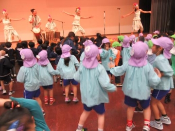 西アフリカの太鼓を中心とした音楽とダンスのグループ"バチコンドーがきてくれてくれました。