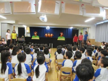 人形劇は、大阪弁での内容が子ども達に大うけでケラケラ・・ケラケラ・・・と笑う場面がいっぱいあって