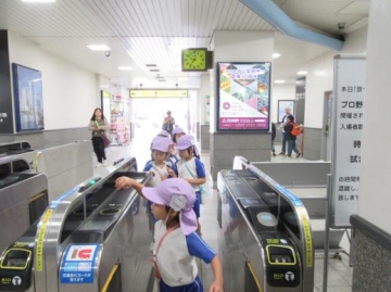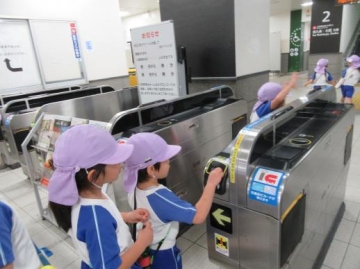 地下鉄は、子ども達が切符を持って改札の出入りを経験してみました。ドキドキしながらも切符が