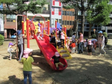 公園では、”しっぽとり”をしたり、”ぽっとん”等の集団遊びをしたり・・