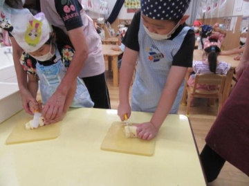 みんな慎重な表情で上手に切っていました。