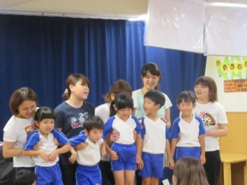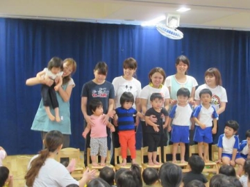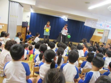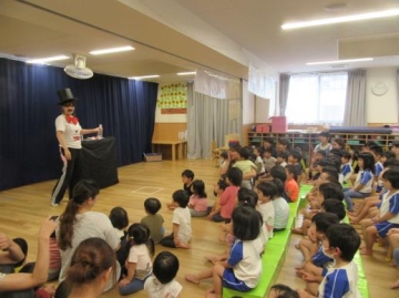 9月のお楽しみ会に全児が参加しました。9月生まれの子ども達が紹介され、インタビューに応えたり・・・保育士のマジックショーを見たり・・みんなで楽しみました。