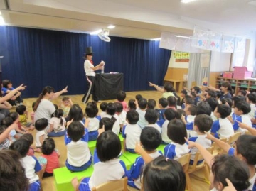 マジックショーでは色々な不思議を真剣な表情で観ていたこども達です。