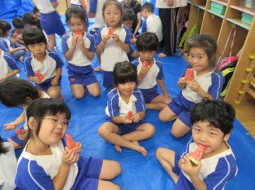 切り分けたすいか ”とってもあま~いすいか”をみんな美味しそうに食べていました。