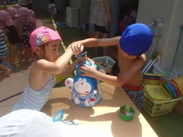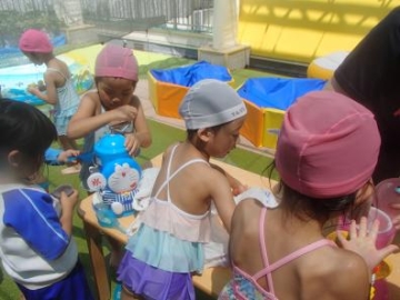 ひまわり組とぱんだ組がプール交流をしました。