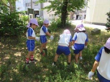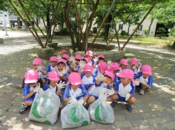 4.5歳児が日頃遊んでいる島津公園へ草ぬきやゴミ拾いなどの清掃活動に行ってきました。