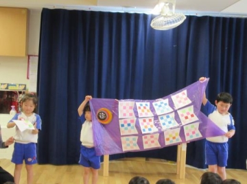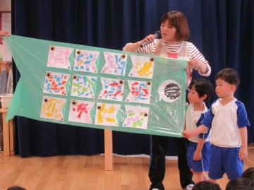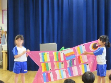 この後、各クラスが作ったこいのぼりを見せ合いクラスの先生からどんな子に育ってほしいかを伝えていただきました。