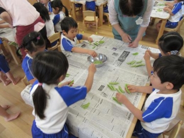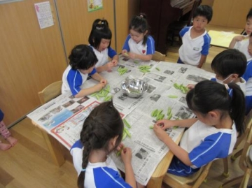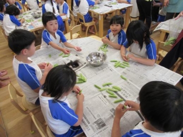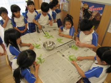 2019年5月9日(木) 5歳児 えんどう豆の皮むき!!