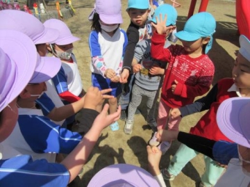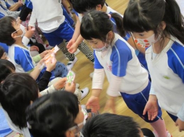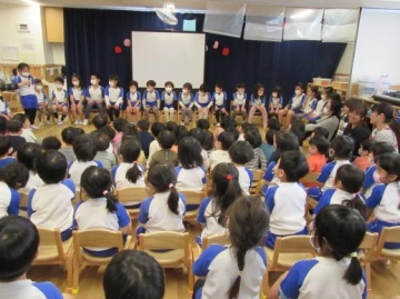 ひまわりぐみの子ども達が入学する小学校当てクイズをみんなで考えたり、各クラスからの出し物見たり、プレゼントを各クラスから頂いてニコニコ笑顔のひまわりぐみさんでした。