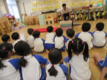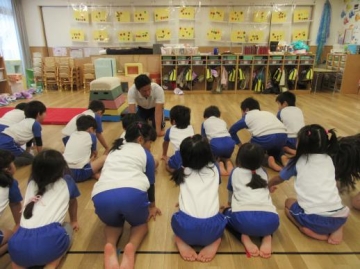 5歳児は跳び箱の跳びかたの注意する点やコツなどを教えていただきました。