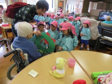 0歳児は、おばあちゃん・おじいちゃんにごあいさつをして来ました。ちょっと人見知りもあったようですが、ほっこリした雰囲気で関われました。