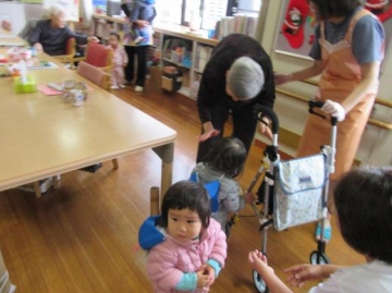 12日に3歳児・13日に0歳児が、西区在宅ディサービスへ遊びに行ってきました。
