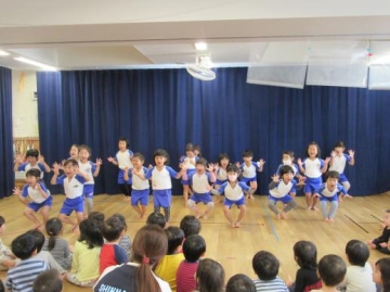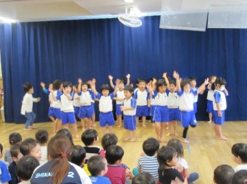 3・4・5歳児からは、新町カーニバルパートⅢでの各クラスの出し物をみんなに披露してくれました。