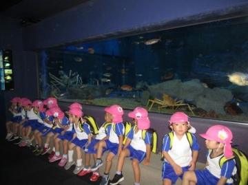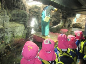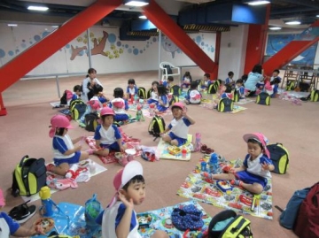 海遊館でもたくさんの魚が水槽いっぱいに泳いでいるのを興味深く眺めたり、スタンプを見つけてはおしたり・・と楽しく過ごせました。