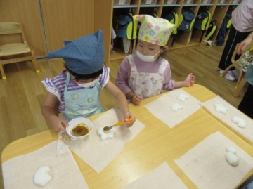 3時のおやつ ”五平餅”を 4歳児がチャレンジしました。
