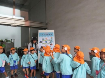 西区役所”にっしーパトロール隊”による防犯・交通安全の出前講座を2~5歳児がうけました。