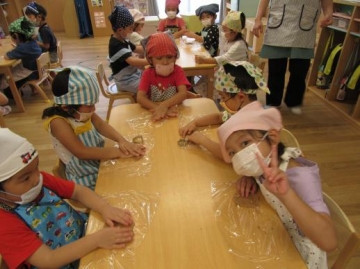 上手く型ができると 「できた~!」と嬉しそうに見せていました。