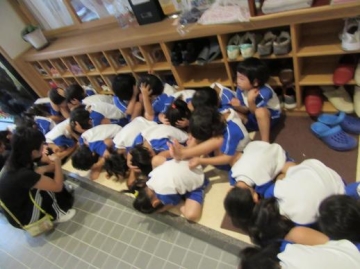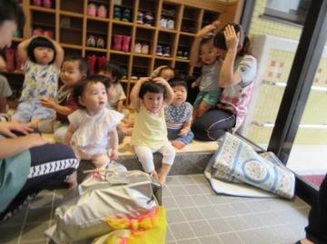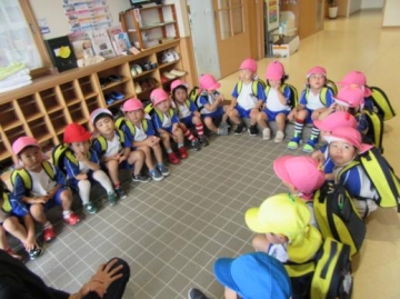 いきなりの訓練で驚いていた子もいましたが、みんなスムーズに階段を降りて避難できました。