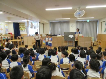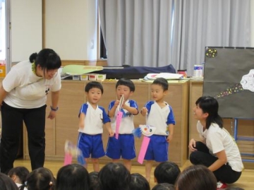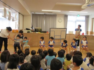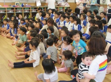 新町第2・第3保育園の子どもたちが集って7月生まれの友だちをお祝いしました。