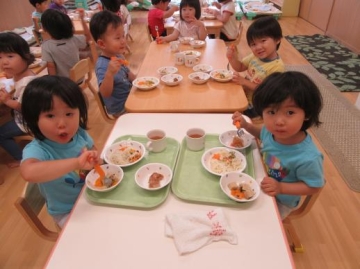 昼食は、オクラ・にんじんの星型の入ったたなばたそうめんを食べてウキウキ・・のこども達でした。
