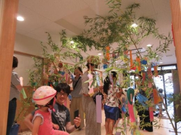 玄関には、親子で一緒に笹飾りをしました。