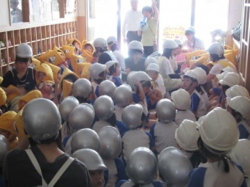 18日の地震の恐怖があったためかみんな真剣な表情で訓練に参加していました。