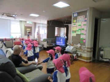 みんなで七夕の歌と幸せなら手をたたこうの歌をうたって来ました。 「かわいいね~!」と言われ、拍手もしていただいてウキウキのこども達でした!