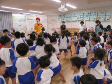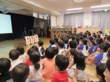 2歳児~5歳児までの子どもたちが”映画紙芝居”をみたり、”にっこりマンボダンス”を踊ったり・・・みんなで楽しみました。