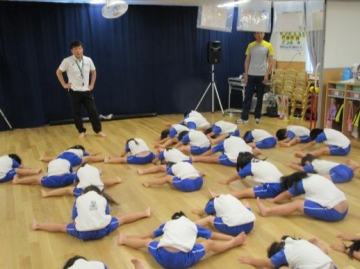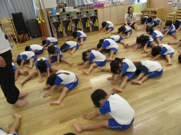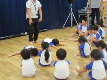 4歳児・5歳児は体操専門の先生から運動遊びを教えて頂き、体感を鍛える身体遊びをしました。