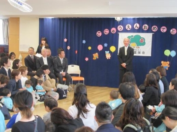 社会福祉法人大阪愛保会新町第2保育園・新町第3保育園合同入園式があり、4・5歳児が参加して新しい友達を迎えお祝いをしました。