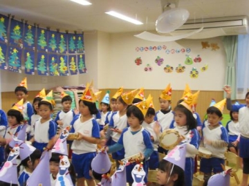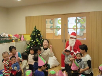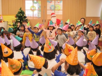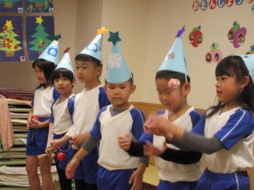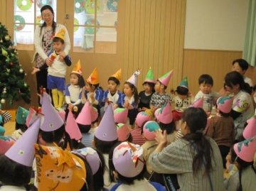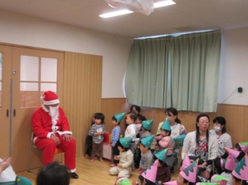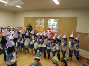 今日は、サンタクロースさんもお祝いに駆けつけてくれ、みんなで手遊びをしたり、歌をうたったりして楽しみました。