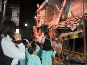 直下型の地震が起きた後の実際の現場の状況をリアルに再現した場面を見たり、地震の揺れや火災のあった異臭の中を通り抜けたりを体験してきました。