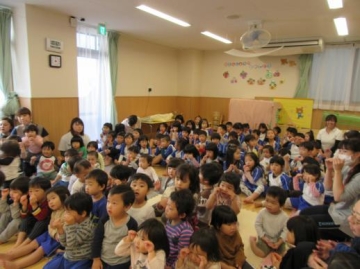 11月のお楽しみ会があり、11月生まれの友だち4人がみんなからお祝いをしてもらいました。