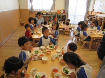 ”大きなにんじん”の劇遊びに誕生児の子どもたちも参加して楽しみました。