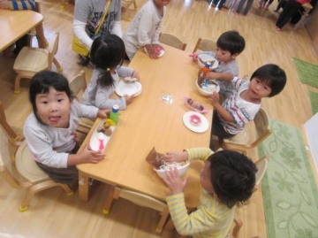 あひるぐみでは今、お店屋さんごっこが盛り上がっています。(たこ焼屋・ラーメン屋・ドーナツ屋など)