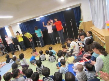 シアターでは、童謡メドレーや身体遊び・人形劇・手遊び・大型絵本などいっぱい見せていただきました。