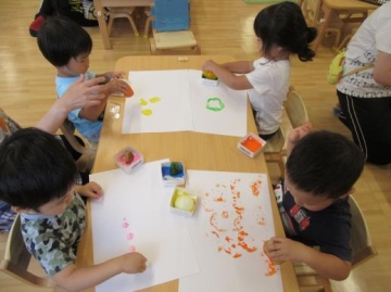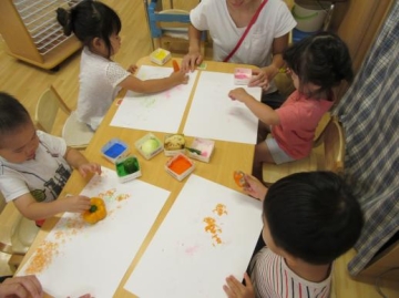 2歳児は、野菜のスタンピング遊び・・・