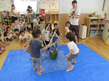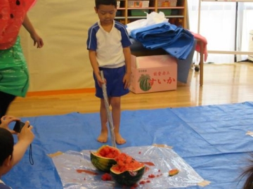 割れたスイカをその場で美味しそうに食べていた子ども達でした。