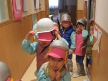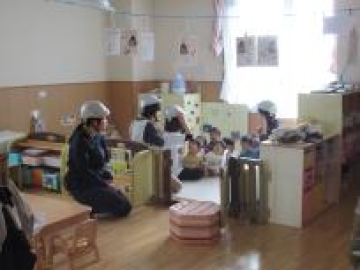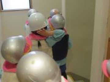 地震の時は幼児クラスは、ロッカーの中へ避難し、乳児クラスは上から物が落ちないところに避難しました。