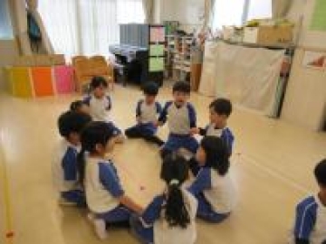 YPCこども園のそら組さんと各自の名前と入学する小学校名を紹介し合いました。