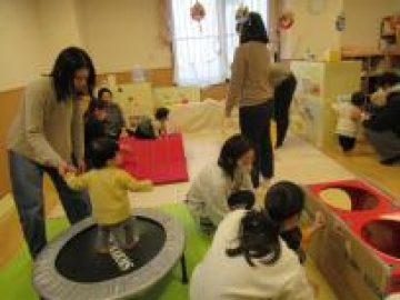 今日は、0・1・2歳児クラスの保護者の方に園での子どもたちの姿を見て頂き一緒に遊んで頂きました。