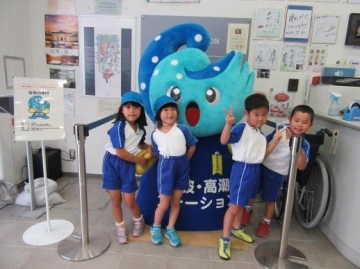 西区郵便局裏側にある”津波・高潮ステーション”へ5歳児が新町保育園5歳児と一緒に行ってきました。
