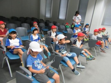 係りの方の案内でガイダンスルームに入って”津波から逃げる”の映像を見たり、ダイナキューブ(津波災害体感シアター)で実際の津波が来たら・・・を子どもたちが体験したりもしました。
